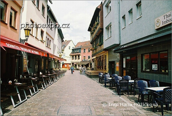 Ulice různých národních restaurací zjevně čekajících alespoň na nějaké klienty. Frankfurt nad Mohanem, Německo.