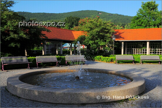 Skromná fontána u vlakového nádraží v Bodenmais, Německo.