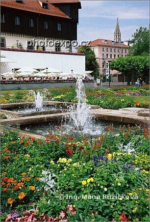 Park před Kostnickým koncilem na břehu Bodamského jezera. Kostnice, Německo.