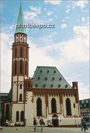 Kostel Alte Nikolaikirche, sv. Mikuláše, na náměstí Römerberg. Frankfurt nad Mohanem, Německo.
