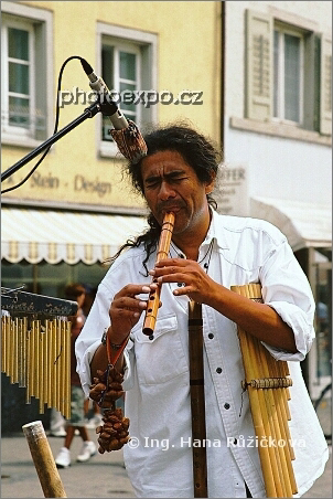 Pouliční muzikant v centru Kostnice (Konstanz). Německo