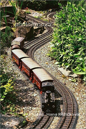Vlakový model akčně brázdící prostor mezi botanickými skvosty zahrady Mainau. Německo