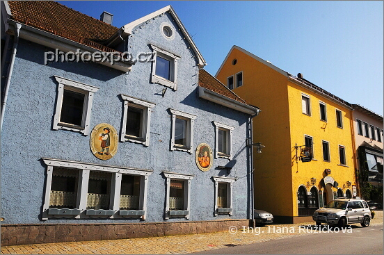 Půvabné, pečlivě udržované domy na hlavní třídě v Zwieslu. Německo