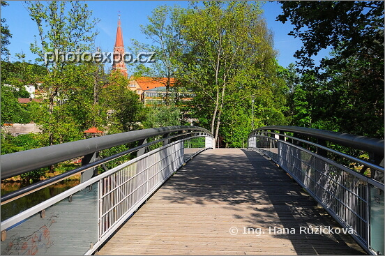 Mostem přes řeku do centra městečka Zwiesel v Německu.