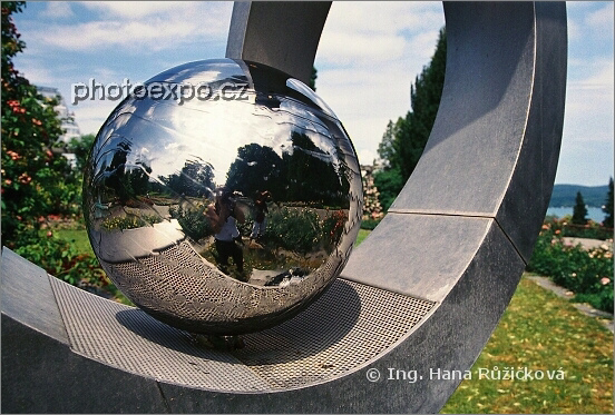 Umělecké dílo Housi Knechta v botanické zahradě Mainau. Německo