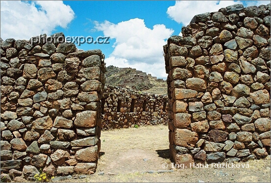 Citadela Pisaq s Chrámem Slunce shlíží na Posvátné údolí řeky Urubamby. Peru