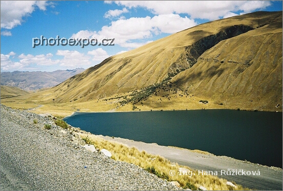Jezero cestou z Huarazu do Chavínu de Huántar. NP Huascarán, Peru.