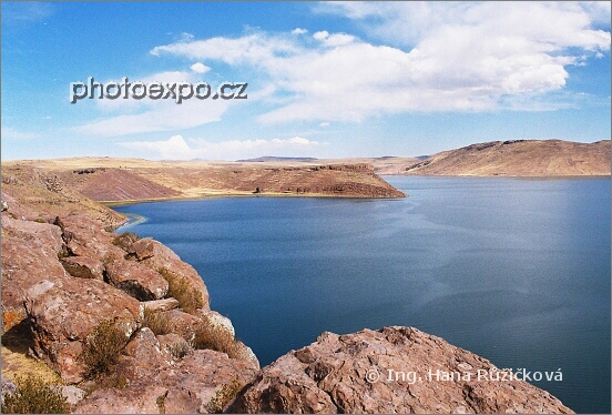 Posvátné jezero Umayo obklopuje pohřebiště Sillustani ležící nedaleko jezera Titicaca. Peru