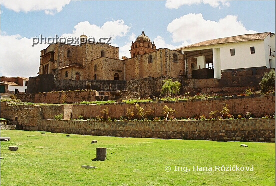 Koricancha (Zahrada zlata či Zahrada slunce), incký Chrám Slunce bohatě zdobený pláty zlata, stříbra a drahokamy. dnes je na základech Koricanchy vybudován klášteer Santo Domingo, obehnaný posvátnými zahradami. Cuzco, Peru.