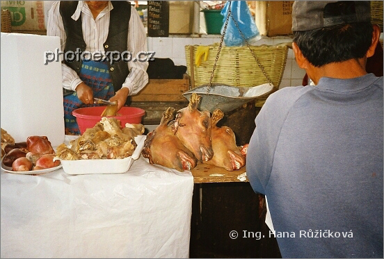 Je libo jednu čerstvou hlavičku? Masný trh v Arequipě, Peru.
