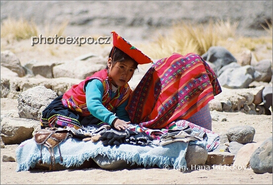 Peruánské děvčátko u prodeje suvenýrů v místě vstupu do oblasti Colca kaňonu. Děti jsou v Peru prostě úžasné. Jejich sametově temné oči a větrem ošlehané rudé tvářičky jsou neodolatelné.