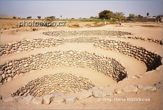 Incké akvadukty v oblasti Nazca. Inkové jimi přiváděli vodu z přilehlé nádrže tam, kde jí bylo třeba. Díky těmto kamenným spirálám, které člověku umožňovaly přístup k tekoucí vodě, bylo velmi jednoduché akvadukt čistit. Voda tímto kanálem samozřejmě teče doposud. Peru
