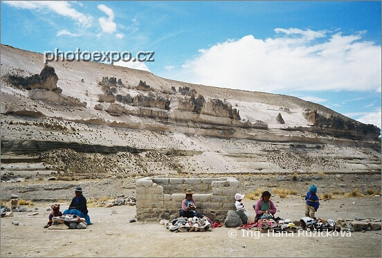 Náhorní plošina Altiplano (4 800 m), místo placeného vstupu do oblasti Colca kaňonu. Pod tzv. kamenným lesem místní Peruánky nabízejí k prodeji ručně vyrobné svetry z alpačí vlny, rukavice, čepice a různé suvenýry. Peru