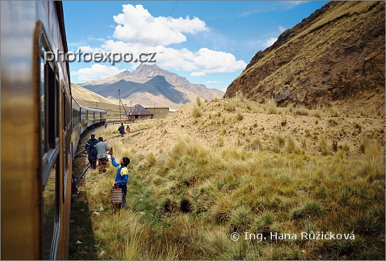 V Peru jsme vyzkoušeli mnoho různých dopravních prostředků. Cestu z Puna do Cuzca absolvujeme ve vlatku. Perurail slouží především turistům a tomu odpovídají i ceny podávaného občerstvení. Cestujeme převážně pustinou, když tu náhle vlak na chvíli zastavuje u rušného indiánského tržiště...