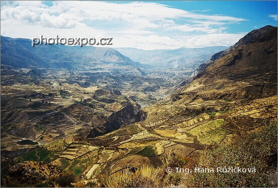 Fascinující Valle de Colca aneb Colca kaňon, podle Peruánců nejhlubší kaňon na světě. Kromě hluboké průvy a okolních vrcholků Cordillera Chila jej zdobí starobylé incké terasy, které dnešní zemědělci stále využívají pro pěstování zemědělských plodin. Ostatně v dnešní době využívají Peruánci vše praktické, co po Incích zůstalo (terasy, vodní kanály, stavební základy...). Snad by to dnes paradoxně tak skvěle jako Inkové ani vybudovat neuměli. Peru