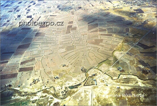 Letecký pohled na políčka nedaleko bolívijského La Paz při letu do Amazonie.