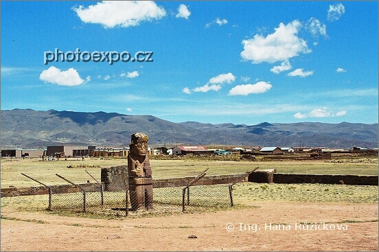 Monolit El Fraile uprostřed tiwanacké Kalasasayi, ochranné zdi náboženského areálu postavené z monolitů podobných prehistorickým evropským menhirům. Tiwanacká kultura, která vznikla v 6. stol. př.n.l., náhle beze stopy zanikla ve 12. století. Bolívie