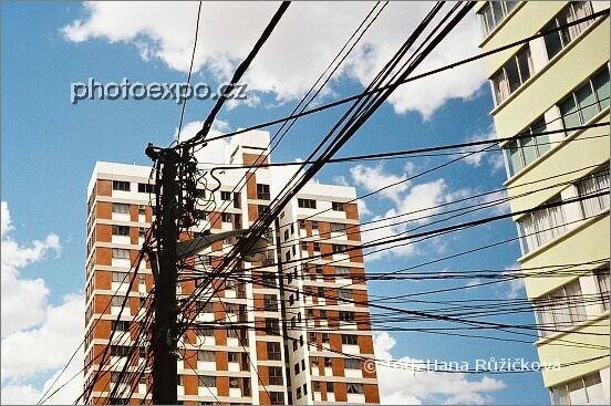 La Paz moderní. Výškové budovy a změti elektrického vedení a dalších nedefinovatelných drátů. A tak je to zde všude... Bolívie