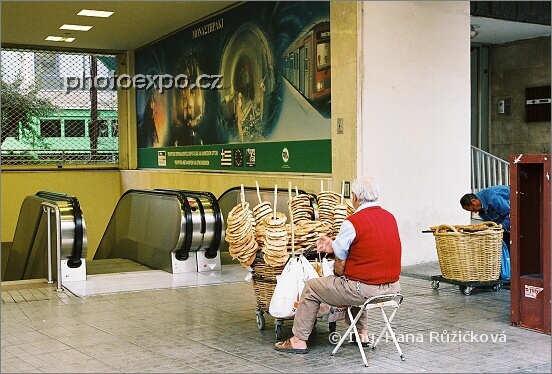 "Však já si vás odchytím. Bez mého preclíku metro neopustíte!" Děda prodávající preclíky číhá se svou nabídkou hned u výstupu z metra. Athény, Řecko.