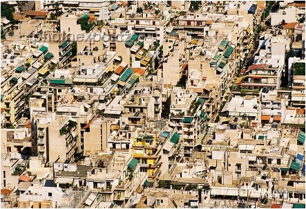 Detail části Athén z výšky pahorku Lykavittós, připomínající jihoamerické chudinské čtvrti.