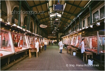 Celkový pohled na část Centrální tržnice s nabídkou masa.
