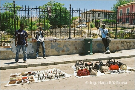 Černoši tu zjevně ilegálně nabízejí své zboží položené přímo na ulici.