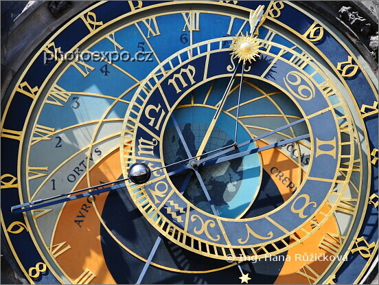 Detail orloje na Staroměstské radnici na Staroměstkém náměstí, Praha.
