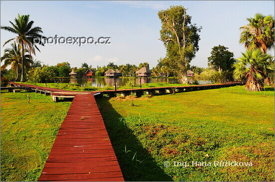 Dřevěné chodníčky na ostrovech Laguny del Tesoro spojující jednotlivé domky ubytovacího komplexu Villa Guamá, ve kterém jsme bydleli. Když jsem sestoupila z chodníku do trávy ostrova, nohy se mi jemně zabořily a jen jsem čekala, kdy se mi kolem boty objeví voda laguny. Neobjevila :=) Oblast Zapata, Kuba.