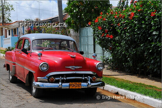 Červená "technika" i červená příroda v ulicích kubánského Vinales.