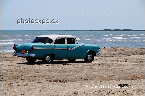 Proč nedojet automobilem až na pláž? Kubánci si s tím hlavu nelámou... Ale pozor na příliv! Playa Bailén, JZ Kuba.