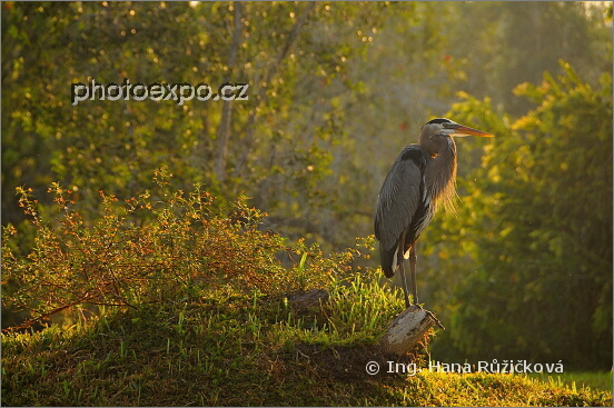 Volavka popelavá v podmanivé ranní atmosféře na ostrovech Laguny del Tesoro. Zapata, Kuba.