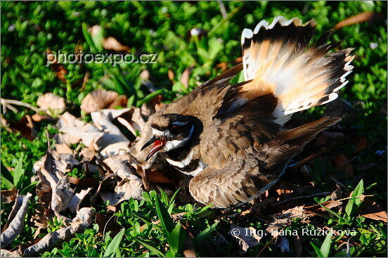 Na jednom z ostrovů Laguny del Tesoro, nedaleko našeho vodního bungalowu, jsem se díky místnímu manažerovi stala účastníkem roztomilého příběhu... Šéf místního ubytovacího komplexu Villa Guamá mne navnadil, ať jdu za ním, že mi něco ukáže. Opatrně jsem z dřevěného chodníčku sestoupila do měkké trávy ostrova a šla za ním. Najednou se u mých nohou objevilo ptačí hnízdo s vajíčky ... a už se k němu řítila ptačí samička kulíka zrzoocasého (Charadrius vociferus) , která mě nejprve pronikavým pískotem odrazovala k přiblížení se a poté, co jsem se nedala zastrašit, hnízdo svým tělem přikryla, bojovně načepýřila křídla i ocas a dál pokračovala ve řvavém pískotu. V ochraně budoucích potomků však nezůstala sama...viz následující fotografie. Zapata, Kuba.