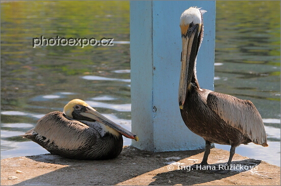 Pelikáni na břehu jezera v eko - osadě Laz Terrazas. Kuba