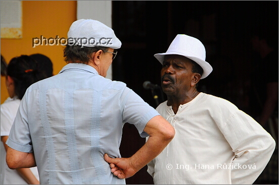 Rozhovor na Plaza Vieja v Havaně. Kuba
