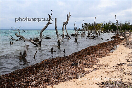 Pahýly stromů zničených hurikánem na kubánském ostrově Cayo Jutías.