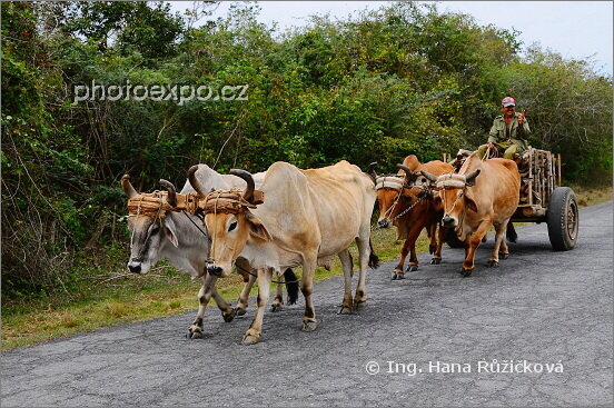Povozy tažené dvěma voly se zapilovanými rohy (pro bezpečnost) jsou běžnou součástí kubánského pouličního života. Čtyřspřeží se však tak často nevidí. Takže naložit dřevo, zapřáhnout a jedeme...a fotografujícím turistům slušně máváme :=)
