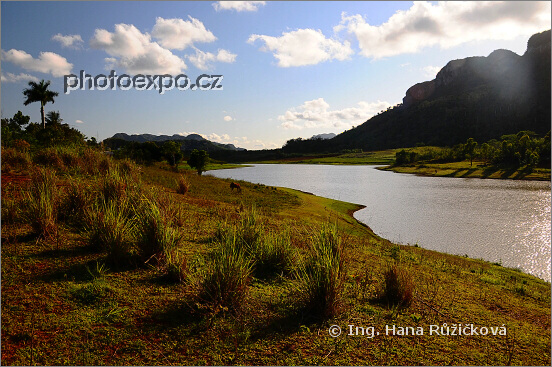Podvečerní protisvětlo nad jezerem u mogoty Zacarías v oblasti Vinales. Kuba