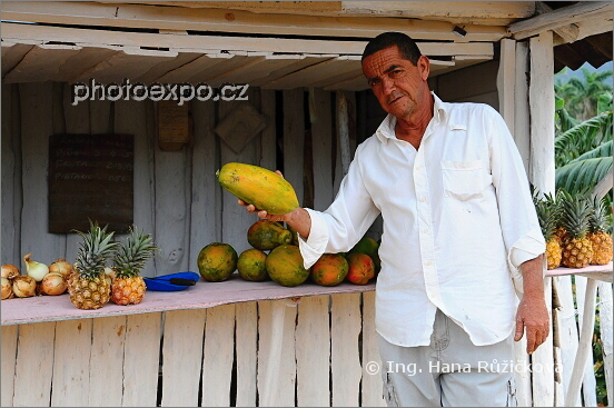 Stánky s typickým kubánským ovocem podél silnic vůbec nejsou častým jevem. Tento byl náš první, který jsme potkali na cestě z Havany do Santa Lucia. Neváhali jsme a hned si koupili banány a dva ananasy, které jsme si prodavačem nechali zdarma naporcovat. A celková cena? Ani nechtějte vědět. Asi tak v hodnotě jednoho ananasového sousta u nás :=) Kuba