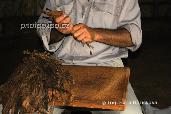 Ve druhé fázi výroby doutníku Benito všechny vybrané tabákové listy, které mají sloužit jako tripa, středový tabák doutníku, jádro, pečlivě mačká v dlani tak, aby je následně mohl zabalit. Vinales, Kuba.