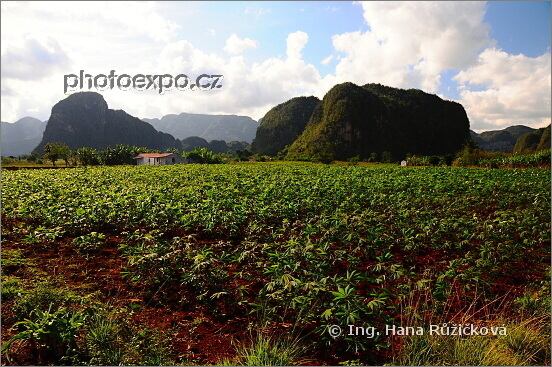 Zemědělská krajina s mogotami, "krasovými kopci" v NP Vinales. Kuba