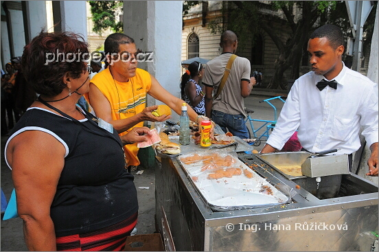Kubánské občerstvení v hlavním městě Havaně. Kamarádka měla odvahu nabízenou housku s flákotou ochutnat...a přežila. Zatím.