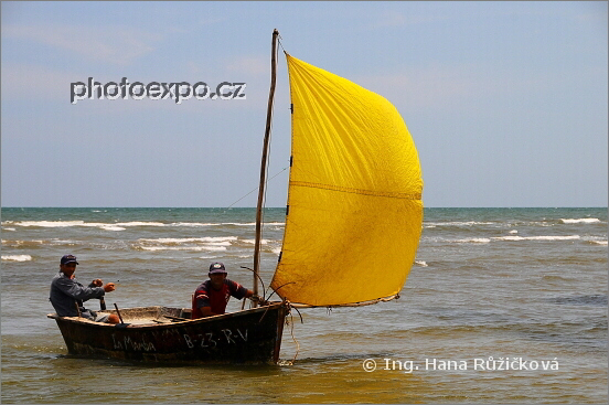 Rybáři u karibských břehů Playa Bailén, Kuba.