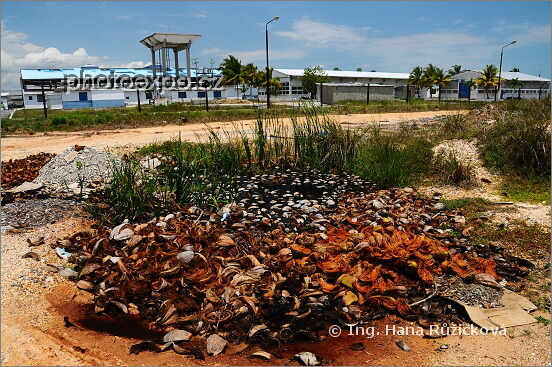 Hromada kokosových slupek vedle pečlivě střežené továrny v La Coloma, přístavním městě na jihu Kuby. Ve vrátnici továrny jsme se s kamarádkou snažily zjistit, co že se to v tomto podniku zpracovává. Měly jsme avízo, že snad langusty. Všichni přítomní se pouze rozpačitě usmívali a dělali, že nám nerozumí. Záhy nám však došlo, že rozumí moc dobře, ale bojí se nám "prozradit tajemství" této továrny, která zjevně nebyla ani zbrojní ani jinou továrnou s objektivně nutně utajovanou výrobou. Prostě strach je tu všudypřítomný. Co když jsme špiónky, které se pídí po kubánsky dokonalém zpracovávání místních mořských potvor...?