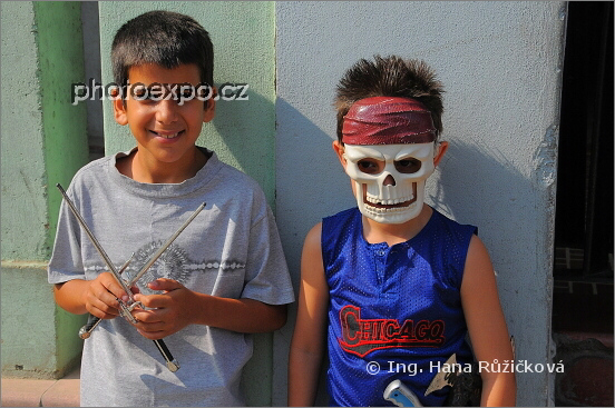 Kluci hrající si v ulicích Pinar del Ría. Kuba
