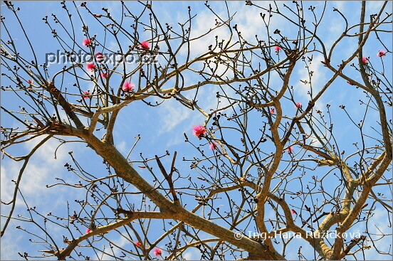 Tenhle strom mě na Kubě dostával - holé větve a křiklavě růžové květy, jakési vějířovité chomáčky jemných růžových trubiček. Zelenou barvu zjevně považuje za zbytečnou.