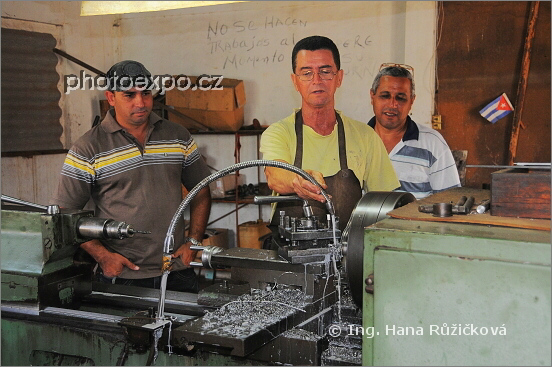 Práce na soustruhu. Vinaels, Kuba.