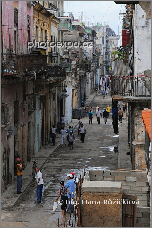 Výhled do ulice San Ignacio z balkonu naší casa particulares Casa Pepe y Rafaela. Havana, Kuba.