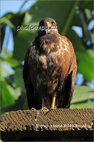 Tak tento ptačí dravec byl pro nás záhadou. Je ochočený, divoký, či tak napůl...? První večer našeho ubytování v ilegální casa particulares v Santa Lucii takto seděl na chlívku, poté i ráno. Pak někam odletěl a večer se nevrátil. Další den ráno už ale zase byl "u rodiny", i když nikoli na střeše chlívku, ale na střeše přístěnku, kam se početná rodina vystěhovala, aby nám čtyřem uvolnila svůj dům. Kuba
