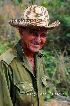 Guajiro, dobrosrdečný Kubánec s typickým slamákem z oblasti Pinar del Rio. Kuba