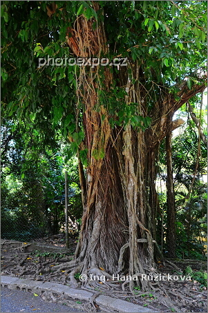 Snad více vzdušných kořenů než větví má strom z rodu fíkovníků. Na Kubě jsme jej potkávali často. Tento fantasticky členitý ve svém kmenu "hlídá" botanickou zahradu Orquideario v Soroe. Kuba